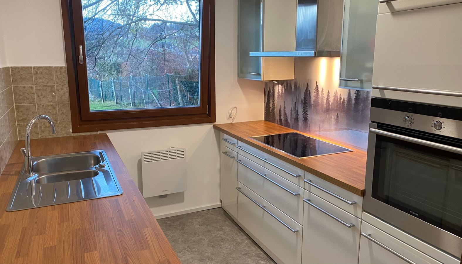 In der modern eingerichteten Küche finden Sie eine zeitgemäße Ausstattung inklusive Ceran-Kochfeld und Backofen, eine Nirosta-Spüle, Waschmaschine und Wäschetrockner, einen Kühlschrank mit Eisfach, Microwelle und eine Kaffeemaschine. Geschirr aller Art ist für sechs Personen komplett vorhanden.