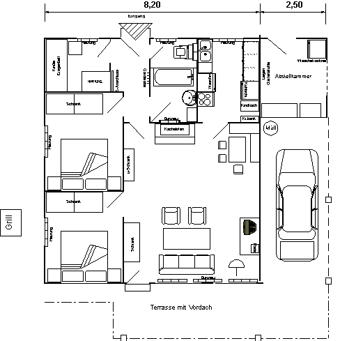 freistehendes Einzelhaus mit überdachter Terrasse und überdachtem